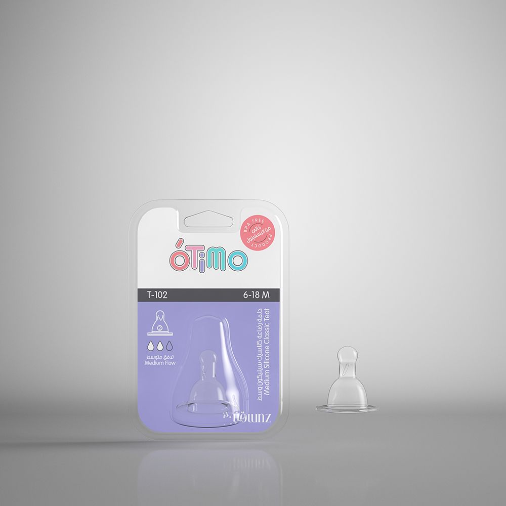 We recommend that moms choose a bottle teat that is similar in shape to their own. This will help maximize baby’s comfort, as well as easing the transition between breast and bottle, making feeding a more rewarding experience. Specially designed to duplicate the feel and shape of a mom’s nipple, providing a feeding sensation similar to natural breastfeeding, Ótimo Baby Feeding Bottle Teats are an ideal choice, with three different flow options available.